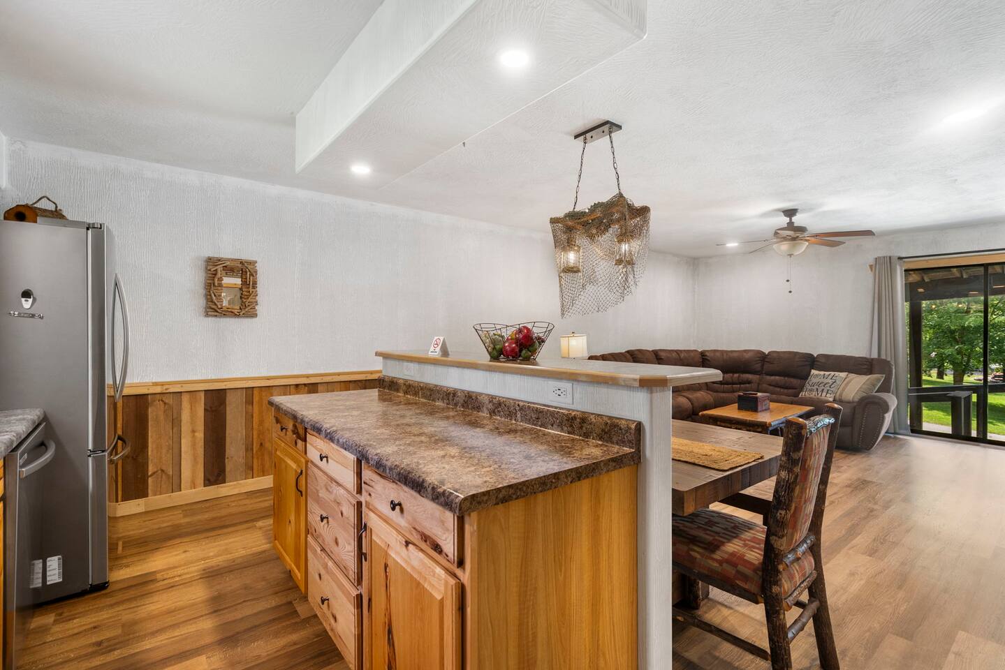 Enjoy the Missouri Ozarks at this wonderful lakeside retreat. Welcome to 4 Bears Lodge! Rent one room or the entire building depending on the size of your group. Each room is uniquely themed and has 2 queen beds, a private bath, microwave and fridge. Two of the rooms have a connecting full kitchen and living room for more space to entertain. Located just minutes away from Branson, Missouri, come see why Lake Taneycomo is the #1 fishing destination in the Midwest.