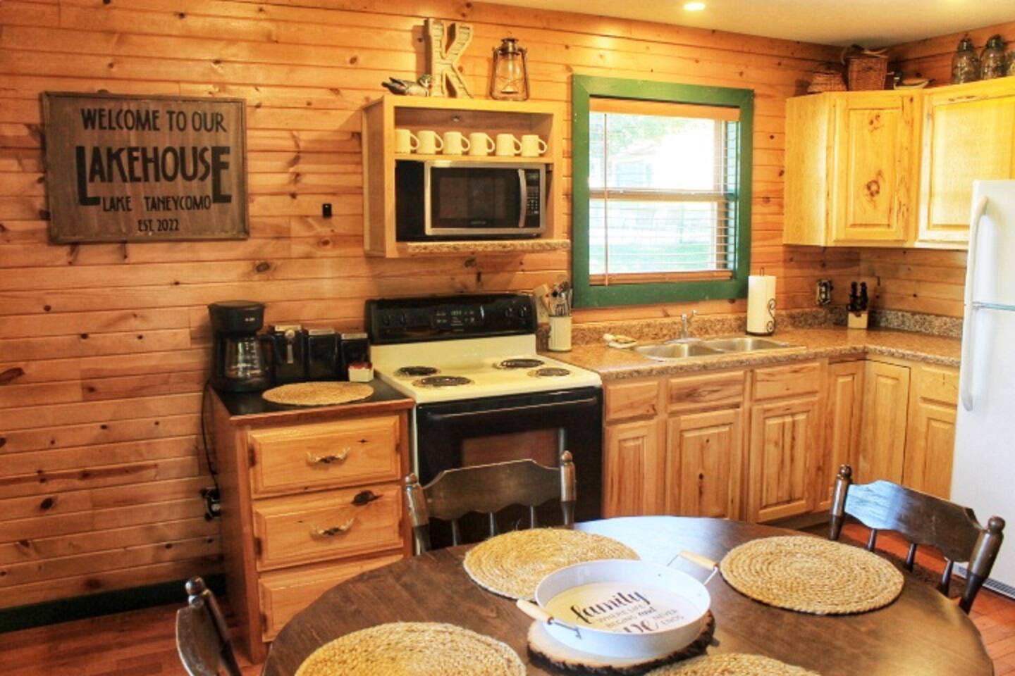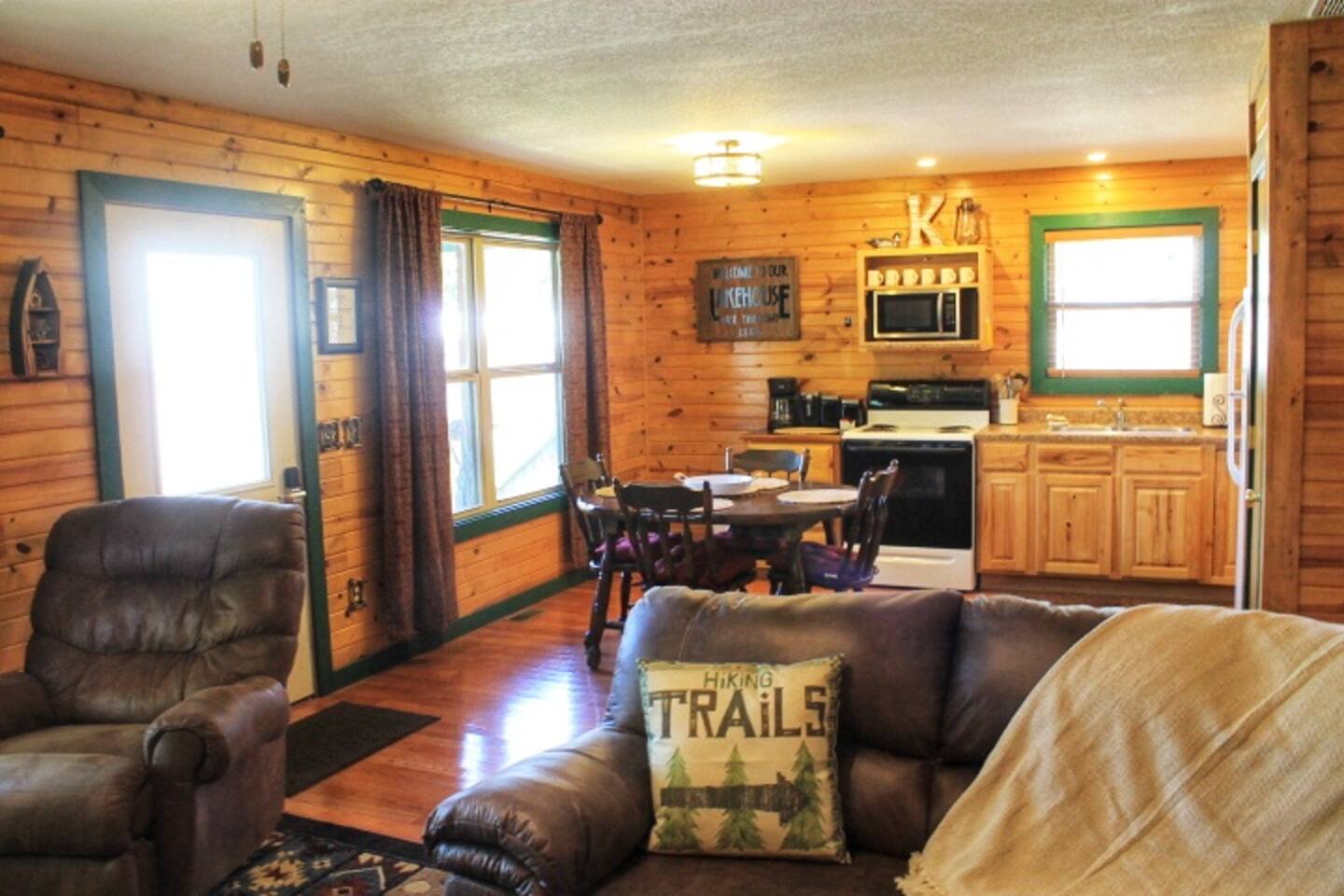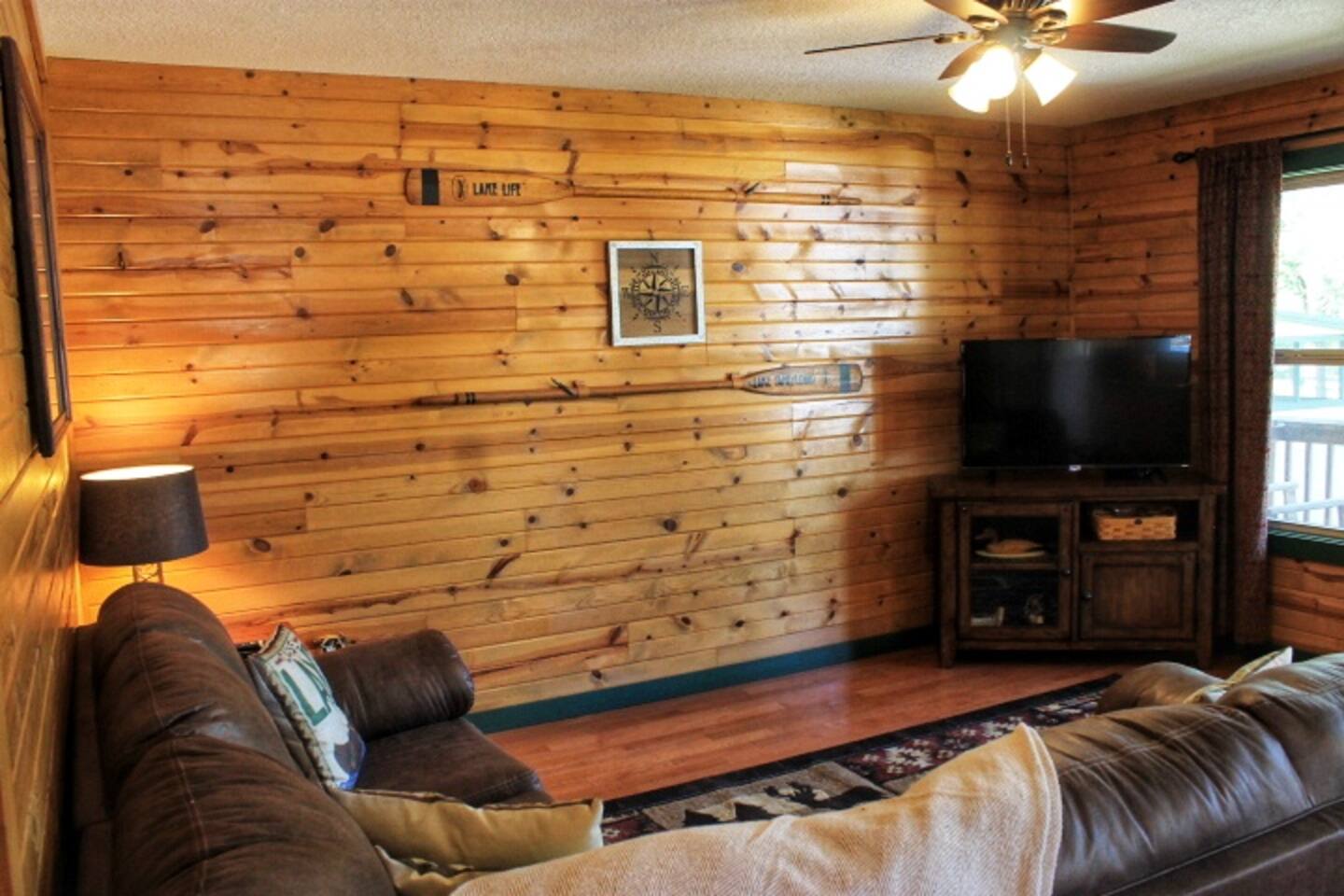 Come stay and relax at our beautiful lakeside cabin on the shores of Lake Taneycomo. The swimming pool is right outside your door and the lake is world famous for Rainbow and Brown Trout! Enjoy sunsets on the porch while taking in the scenic view of the lake and bluffs across the lake. The resort amenities include the swimming pool, access to boat ramp and a dock slip is always available for a small fee, so bring your boat!