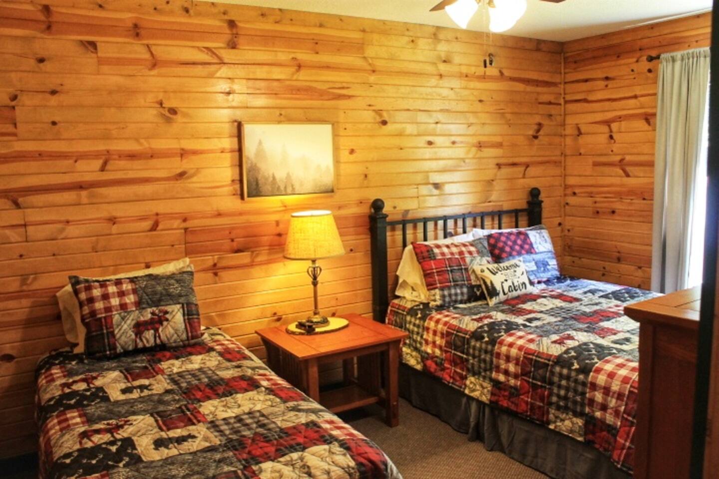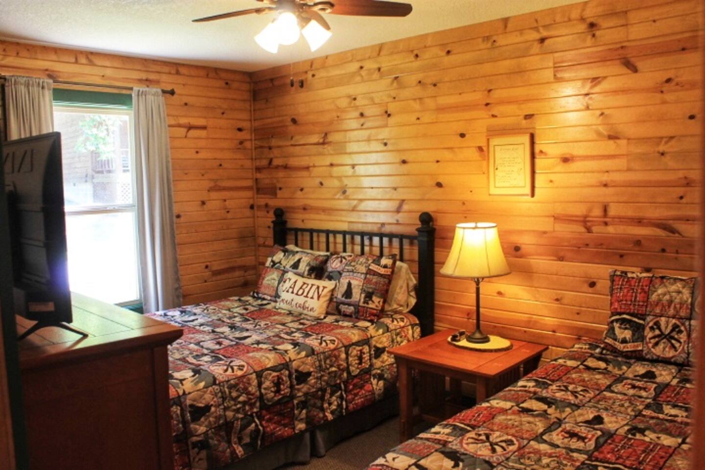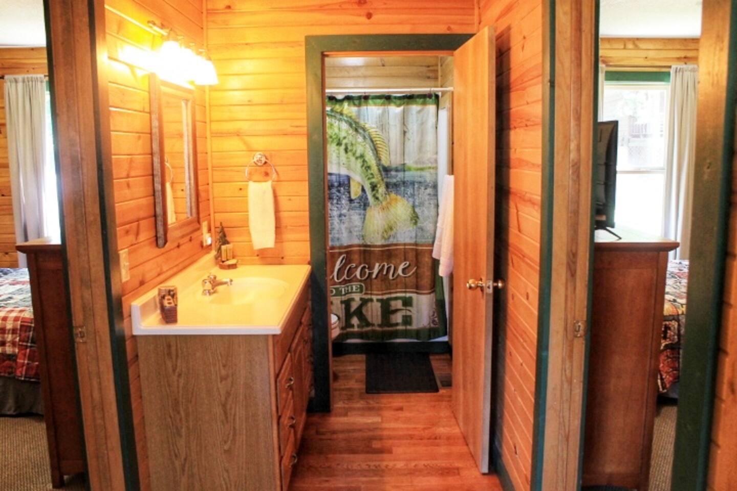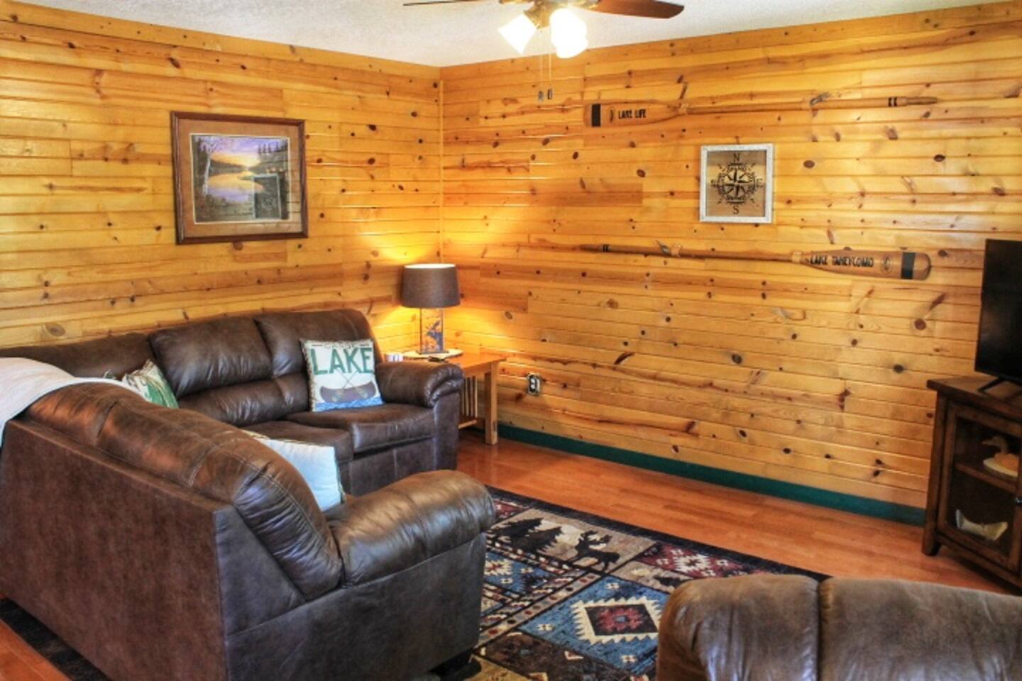 Come stay and relax at our beautiful lakeside cabin on the shores of Lake Taneycomo. The swimming pool is right outside your door and the lake is world famous for Rainbow and Brown Trout! Enjoy sunsets on the porch while taking in the scenic view of the lake and bluffs across the lake. The resort amenities include the swimming pool, access to boat ramp and a dock slip is always available for a small fee, so bring your boat!